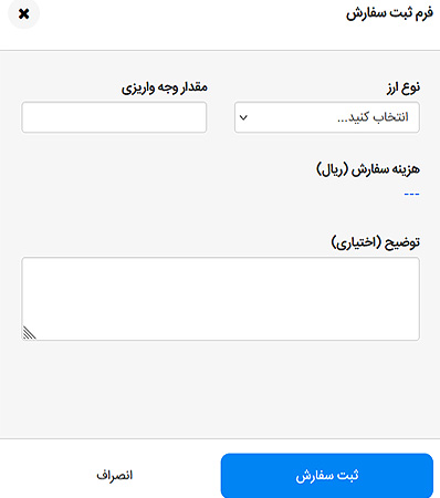 ۵. در قسمت مقدار وجه واریزی، مبلغ دلخواه خود را وارد کرده و با کلیک روی دکمه «ثبت سفارش»، وارد مرحله پرداخت آنلاین شوید.