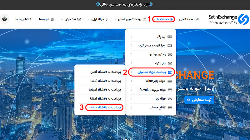 مراحل پرداخت شهریه به دانشگاه فرانسه با صرافی ستین