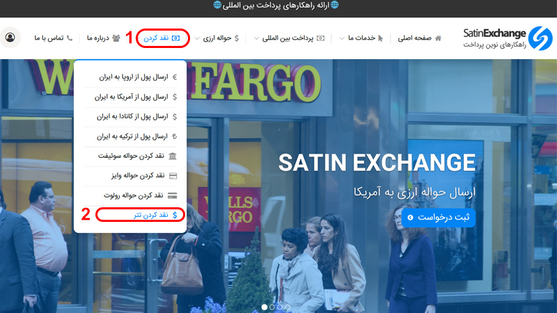 ۲. سپس از منوی بالای صفحه، روی «نقد کردن» و سپس « نقد کردن تتر» کلیک بفرمایید.