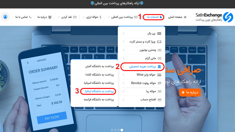 مراحل پرداخت شهریه به دانشگاه ایتالیا با صرافی ستین